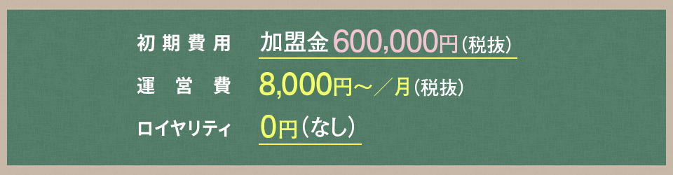 ノルマやロイヤリティーなども一切ありませんので、赤字になりにくく、ご自分に合ったペースで