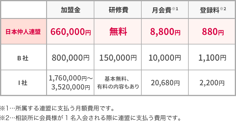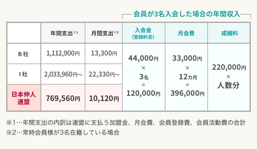 ※2 相談所に会員様が1名入会される際に連盟に支払う費用です。