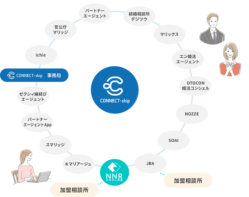 相談所開業は、ぜひ日本仲人連盟(NNR)で!長年の月日で培ったノウハウで、皆様の結婚相談所ビジネスが円滑に運営できるようバックアップさせていただきます。