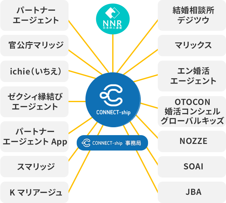 結婚相談所の役割は当然ながら、会員様をご成婚に導くことです。相談所の経営を安定させるためにも成婚者を出すことは非常に重要になってきます。多くのお相手と出会える機会があれば、それだけ理想のお相手と出会える可能性が高くなります。NNR加盟で紹介可能な登録会員数は75,000名以上と業界最大級です。「スクラム」と「コネクトシップ」の利用により、結婚相談所や連盟組織の垣根を越え、より多くのお相手と出会うチャンスがNNRにはあります。会員数が多いから成婚率が高く、会員様からも結婚カウンセラーさんからも選ばれているのです。