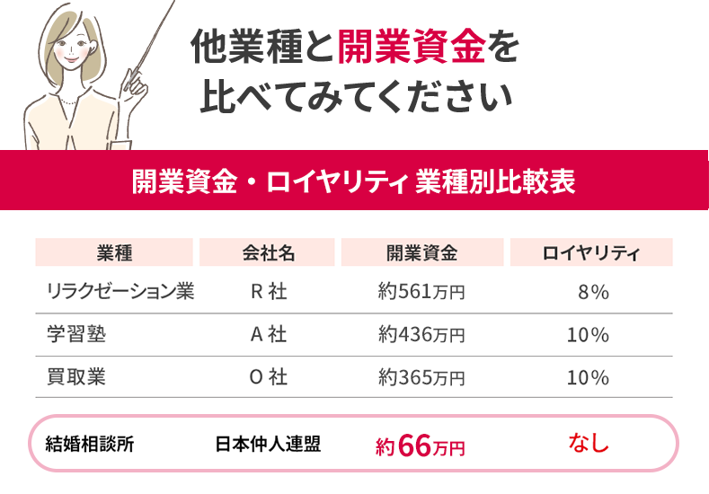 会員様が3名いて、ご成婚が1名出れば、1年間で加盟金を含めた諸経費を全て稼ぐことができます!